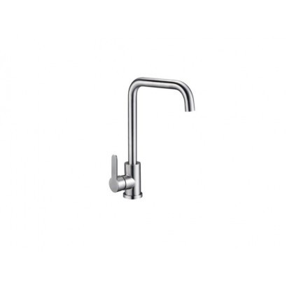 Egykaros konyhai mosogató csaptelep. Szín: rozsdamentes. Tökéletesen kiegészíti a konyha belsejét egy lakásban vagy vidéki házban. Kiváló minőségű rozsdamentes acélból, GOST-08Х18Н10(18/10). A 35 mm-es kerámiapatron lehetővé teszi a hőmérséklet és a víznyomás pontos beállítását. Kifolyó 360 fokos forgatással. Műanyag szellőztető egyszerű tisztítási funkcióval. Szemceruza szabvány: G 1/2, rugalmas. Beépítés: mosogatóra, 1 lyuk, max. asztallap vastagsága 30 mm.